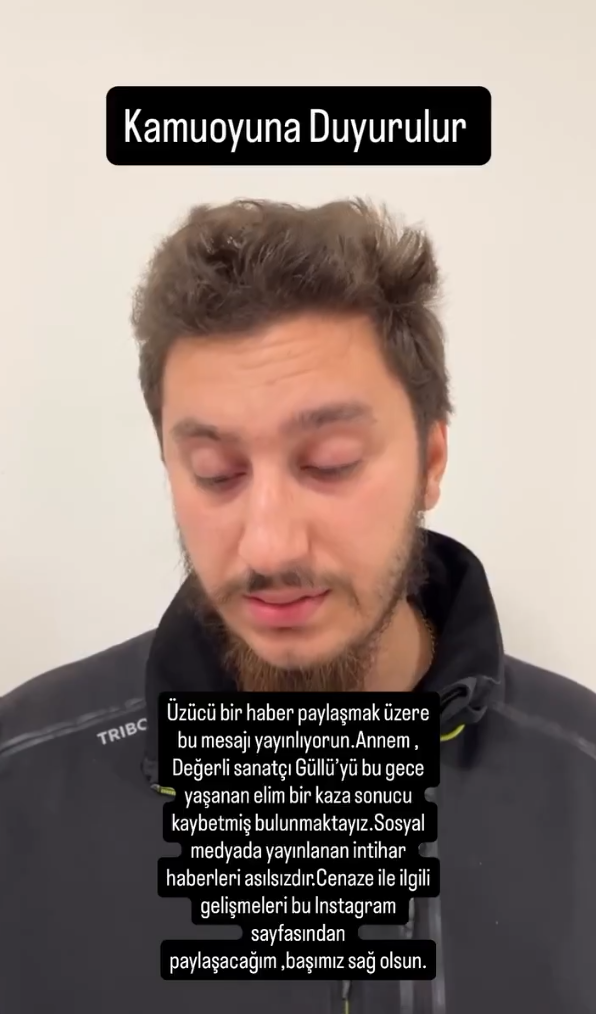 Güllü’nün oğlu, “Üzücü bir haber paylaşmak üzere bu mesajı yayınlıyorum. Sosyal medyada yayınlanan intihar haberleri asılsızdır.” ifadelerini kullanıp “Güllü’yü bu gece yaşanan elim bir kaza sonucu bu gece kaybetmiş bulunmaktayız. Cenaze ile ilgili gelişmeleri bu Instagram sayfasından paylaşacağım, başımız sağ olsun.” açıklamasında bulundu.